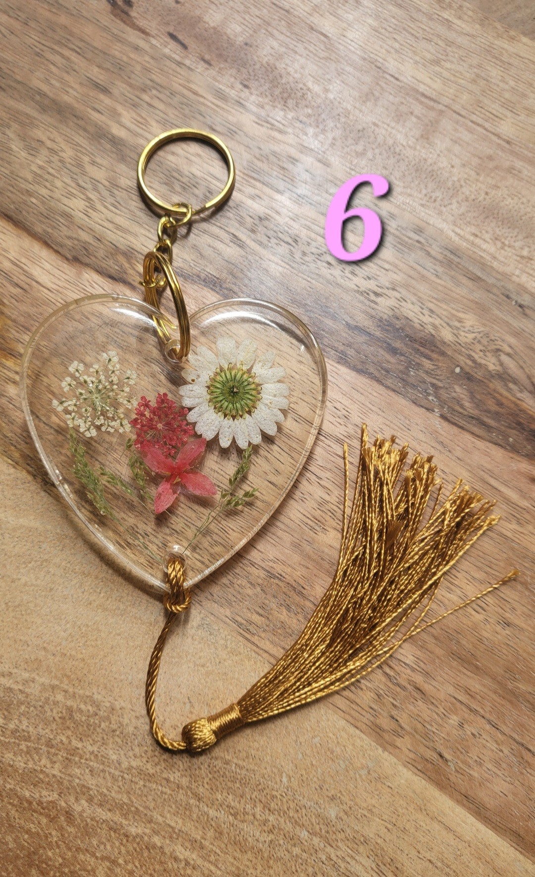 Bijou en résine époxy (7 x 7 cm) à suspendre au rétroviseur. Fleurs séchées, paillettes ou messages comme Maman, Je t’aime, I love you. Chaque modèle est fait main et unique.