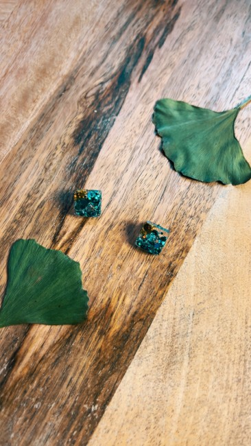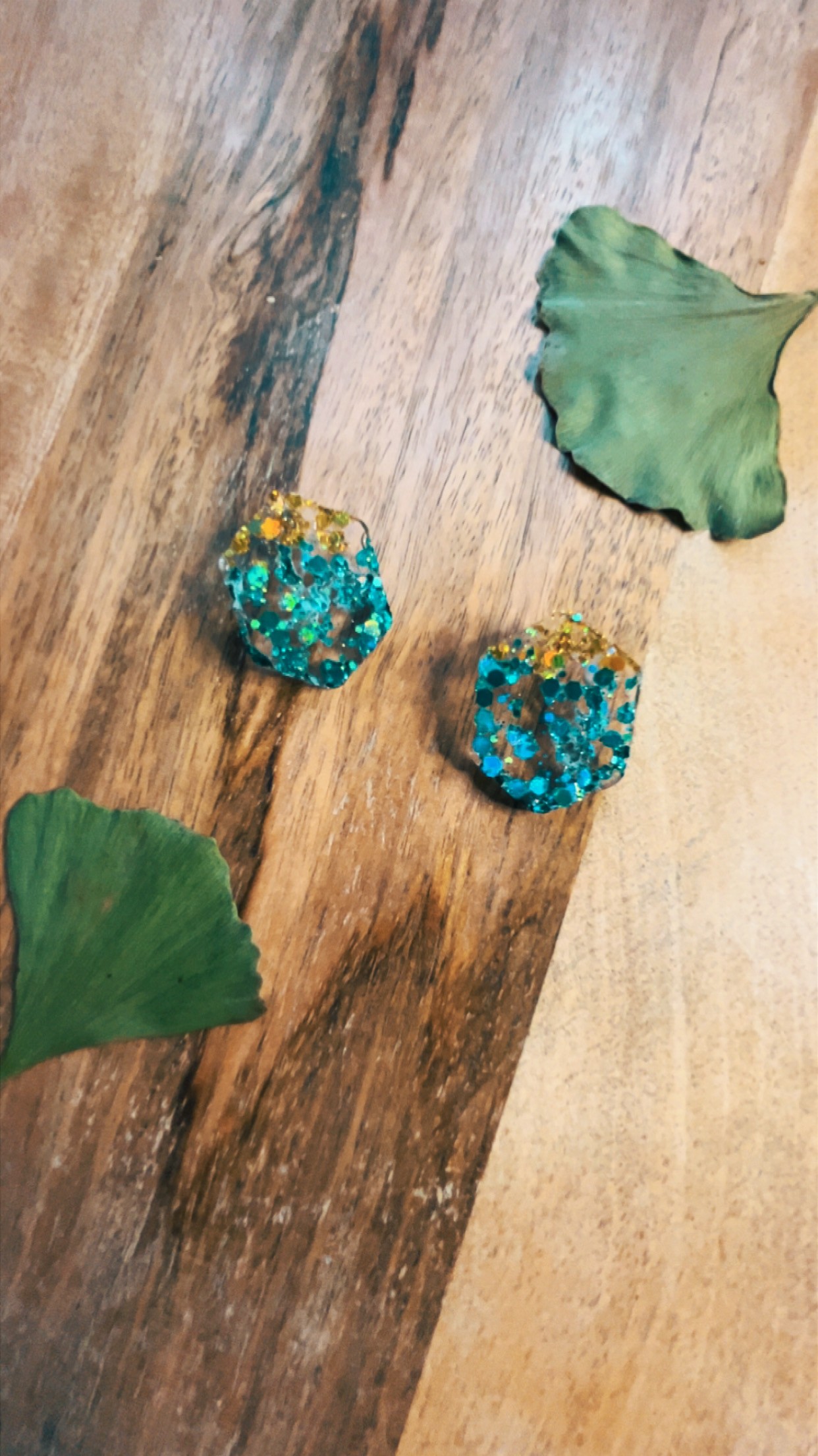 Audacieuses et lumineuses, ces boucles d’oreilles hexagonales, carré et rectangulaire en résine sont incrustées de paillettes vertes et dorées. Leur forme géométrique unique apporte une touche de modernité et d’originalité à votre style.