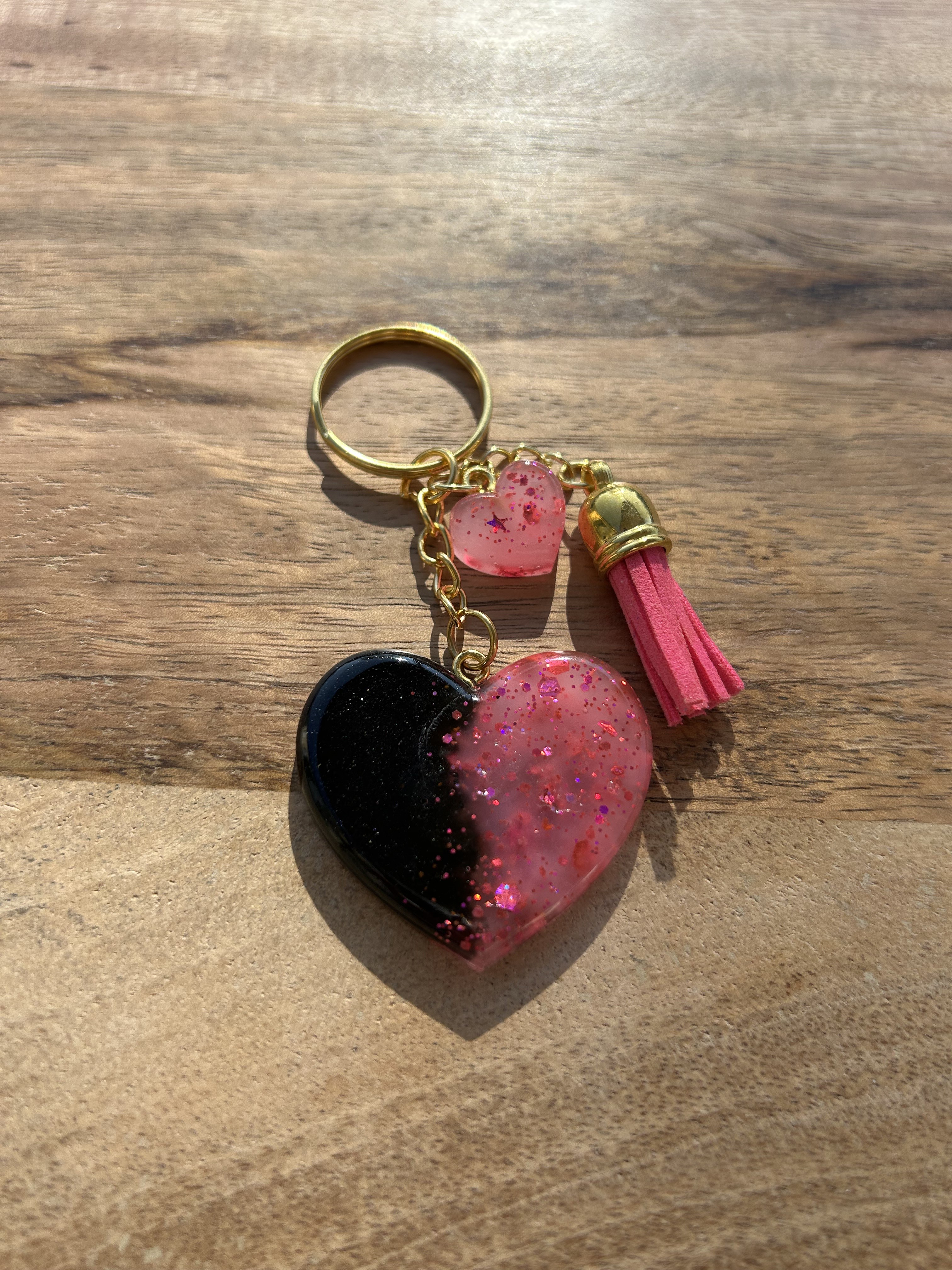 Ces magnifiques porte-clés en forme de cœur sont réalisés à la main en résine époxy, avec des finitions soignées et des effets uniques : paillettes, feuilles dorées, nuances de couleurs ou dégradés scintillants.